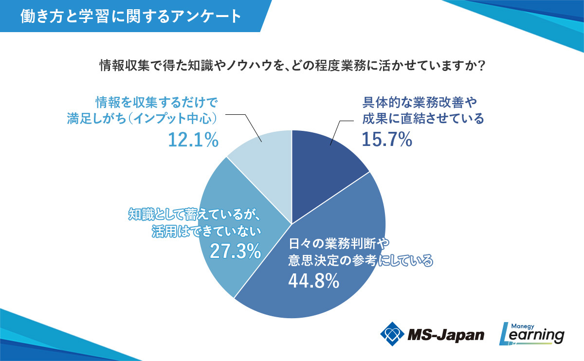 情報収集で得た知識やノウハウを、どの程度業務に活かせていますか?