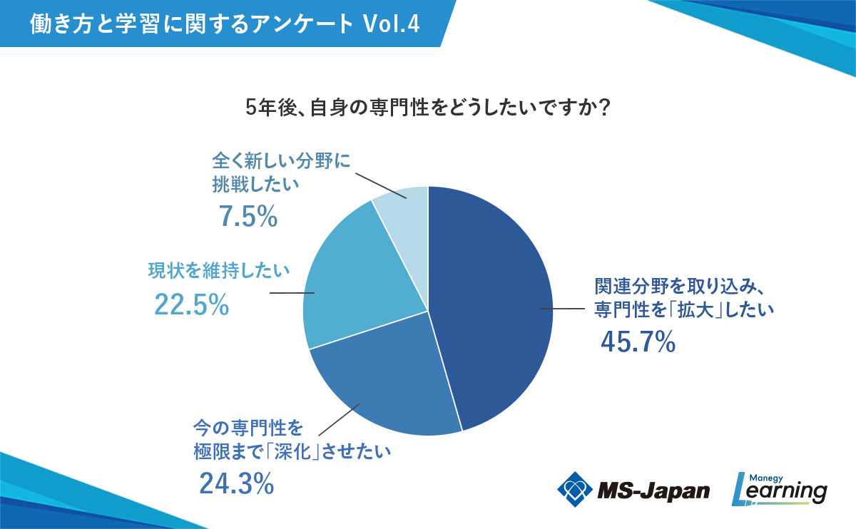 「専門性を拡大したい」という回答が45.7%と半数近くに達し、「深化させたい(24.3%)」を大きく上回りました。