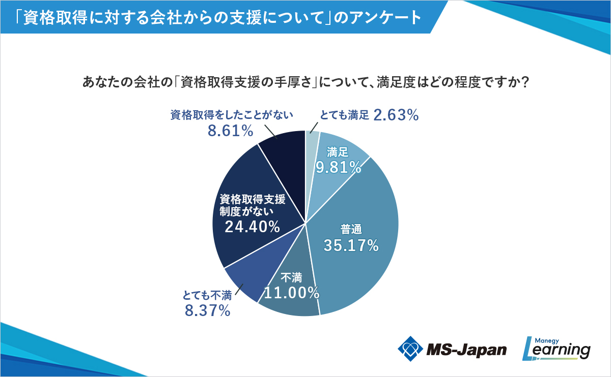 本調査では、企業の資格取得支援制度について、満足している従業員はわずか1割程度という結果になりました。