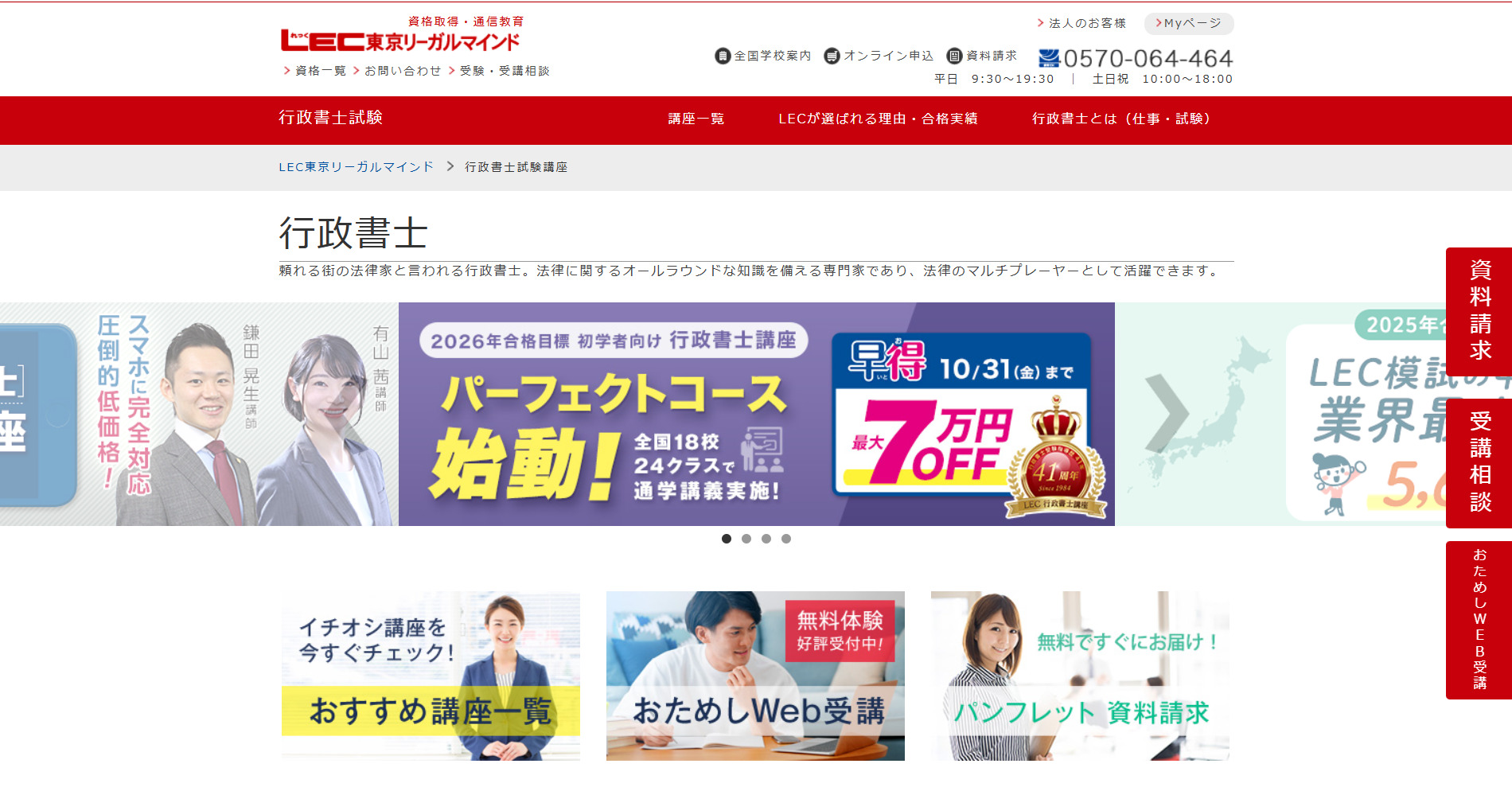- 質の高い講師陣: 「法律のLEC」として名高い、経験豊富な講師による分かりやすい講義が受けられます。