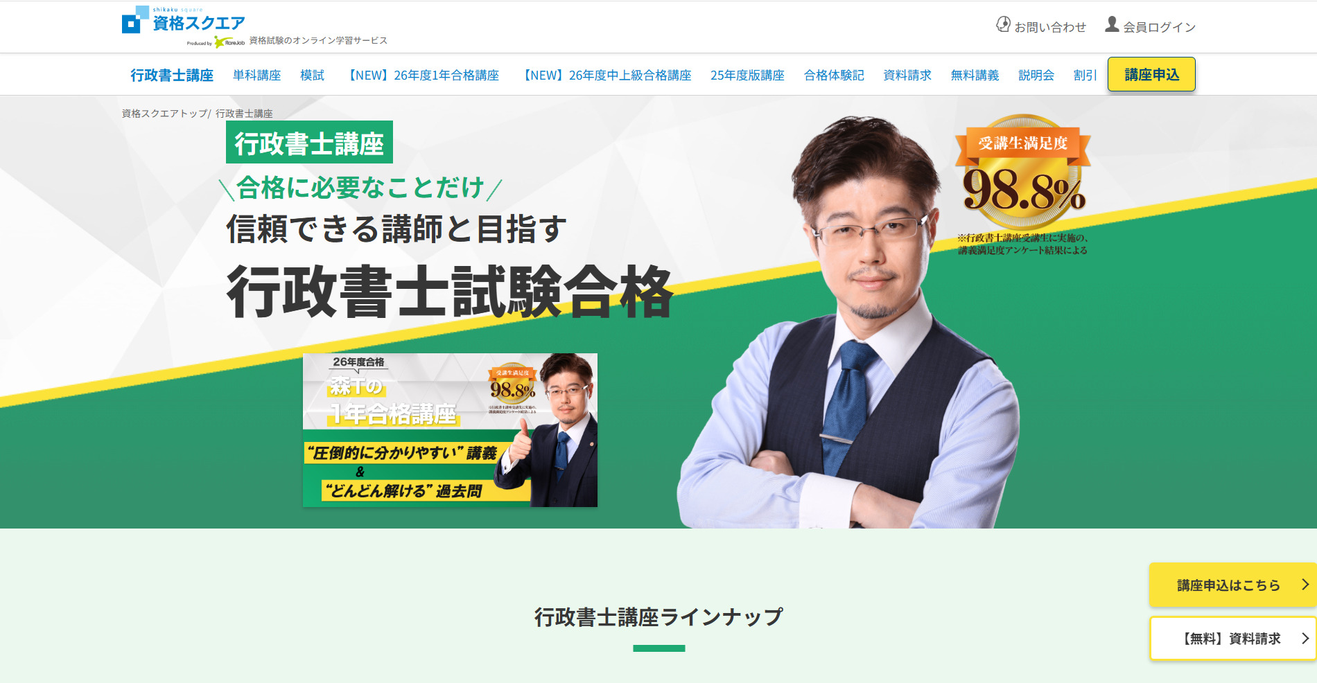 講師歴20年以上の森講師の、「固い法律をやわらかく説明する」授業が好評。受講生満足度は98.8%という高評価。