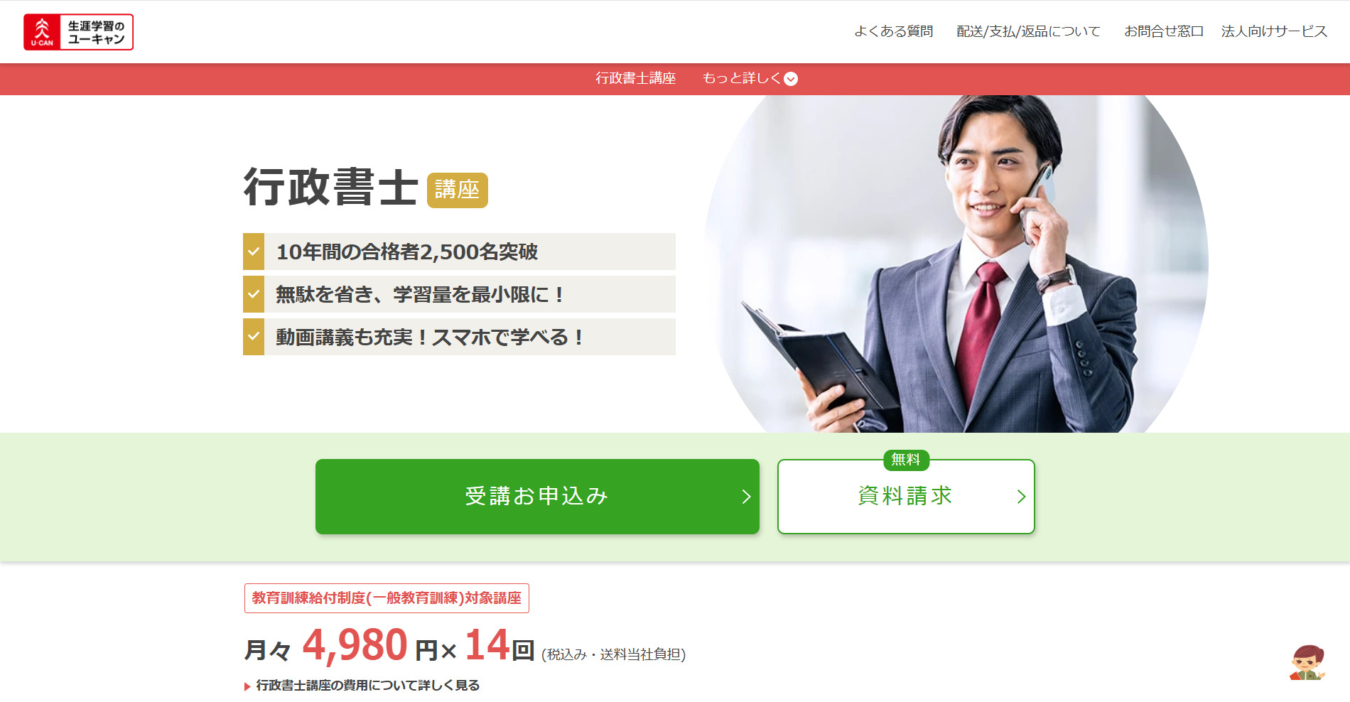 「不合格なら受講料を全額返金」という画期的な保証制度が最大の特徴です。