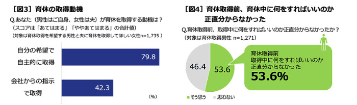 ただし、育休を取得した男性の過半数が、取得前は育休中に何をすればよいのか、正直わからなかったと答えていたことも明らかになった。
