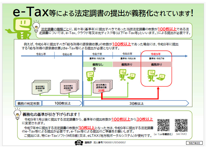 出典:国税庁「e-Tax等による法定調書の提出が義務化されています(チラシ)(令和7年8月)