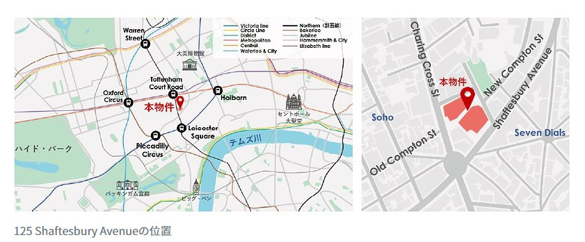 計画地は、ロンドン有数の商業・劇場エリアであるSohoおよびCovent Gardenに近接し、「Tottenham Court Road」駅から徒歩約3分という高い利便性を有するエリアに位置する。
