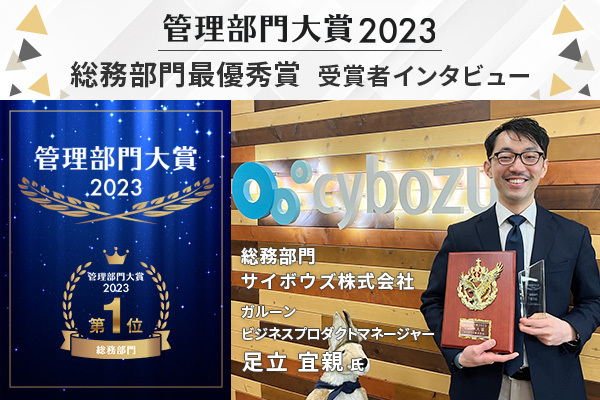 マネジーが実施した全国の管理部門で働く人が本当に使ってよかったサービス・システムを決める『管理部門大賞2023』で、サイボウズ株式会社の「サイボウズGaroon」が「総務部門」にて第1位を獲得しました。