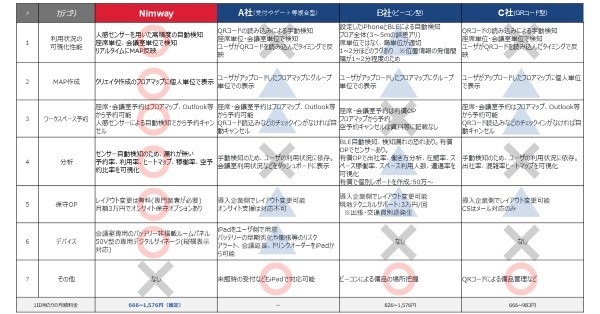 ワークスペースの管理・予約からデータ分析までを可能にし、フリーアドレス導入・運用をサポートするサービスです。利用者の携帯電話へアプリをインストールする事でオフィスのどこに居るかを知る事も出来ます。