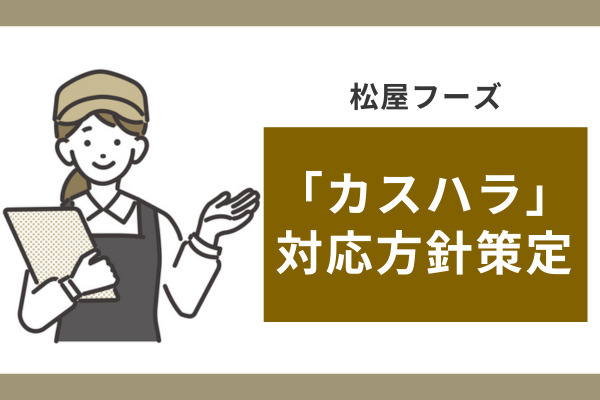 松屋フーズは従業員が心身ともに安心して働ける職場環境を守る目的で、「カスタマーハラスメントに対する方針」を策定。基本方針の中で、「質の高いサービスを継続的に提供するためにもカスタマーハラスメントに該当する行為に対しては、 毅然 きぜん とした態度で対応を行うこともある」とする。