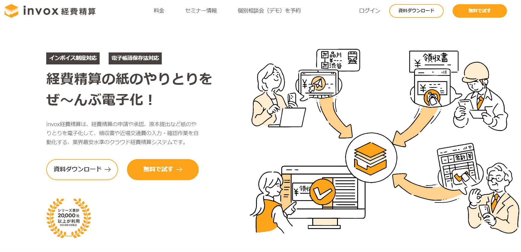 invox経費精算は、経費精算の申請や承認、原本提出など紙のやりとりを電子化して、領収書や近場交通費の入力・確認作業を自動化する、業界最安水準のクラウド経費精算システムです。
