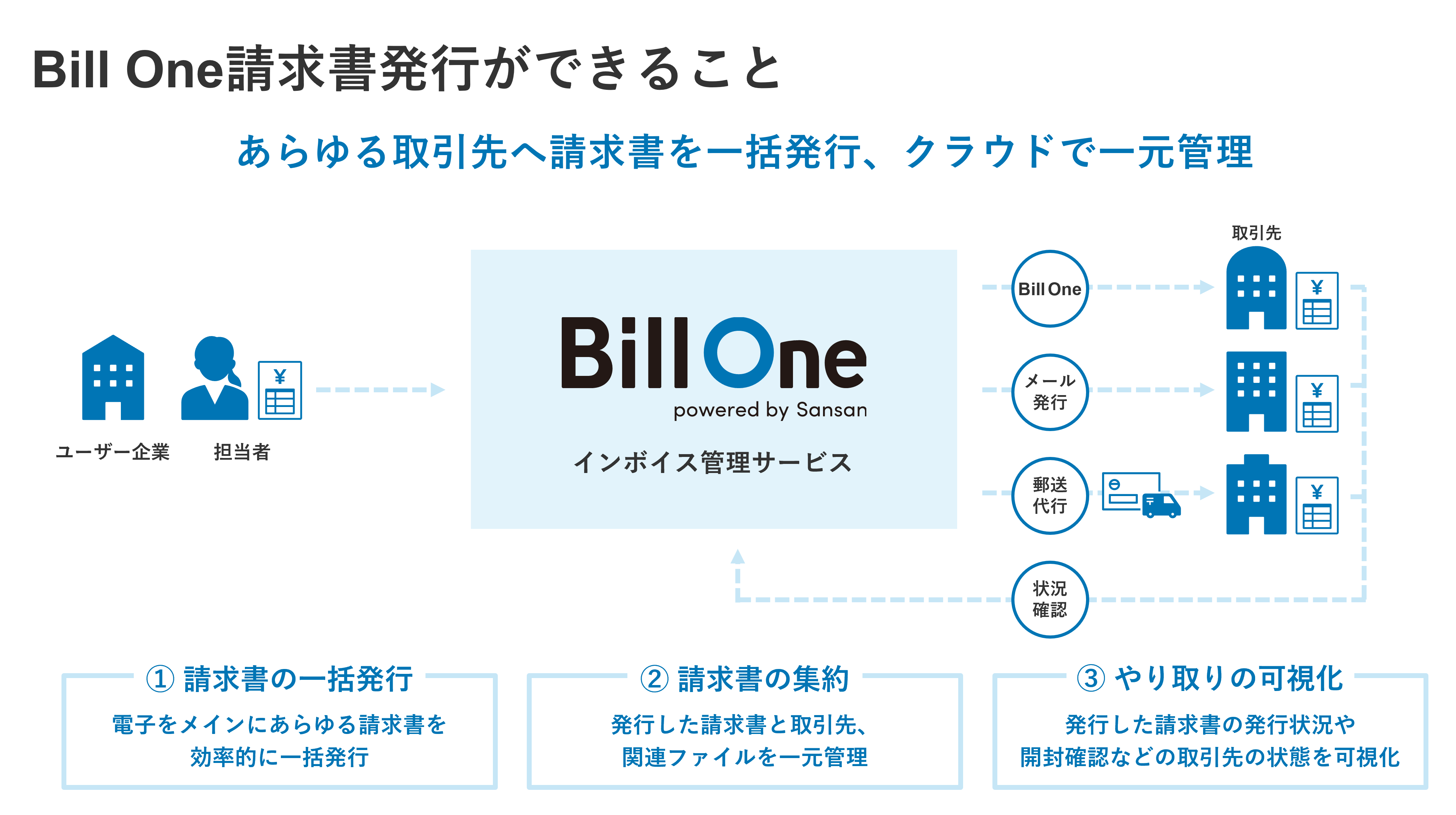 Sansan株式会社が提供する「Bill One債権管理」は、請求書発行からあらゆる入金に対する消込を自動化し、未入金管理・催促までを一元管理できるサービスです。