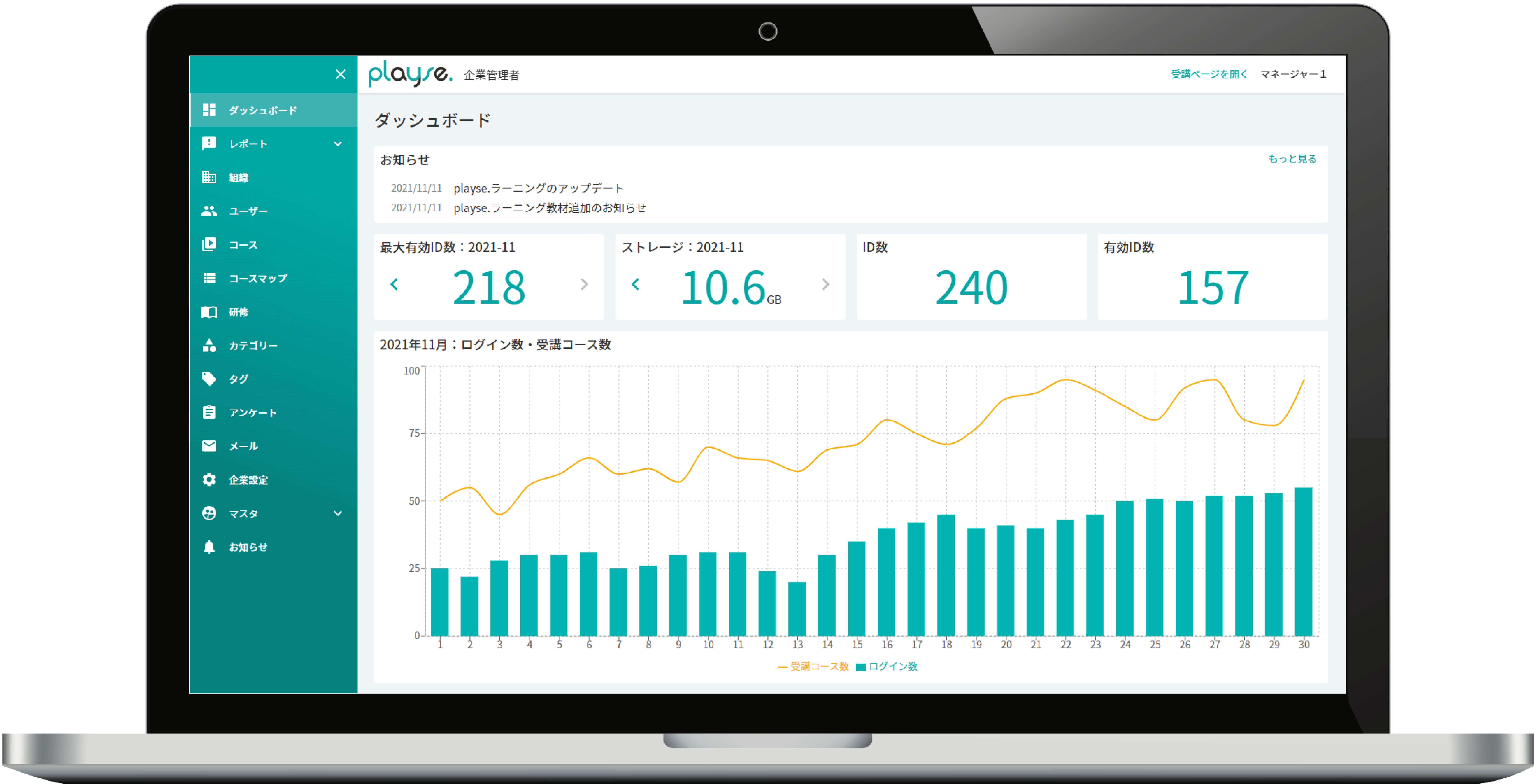 | 機能・仕様 | Webシステム / アップロード機能 / コースマップ機能 / テスト・アンケート機能 / 管理・レポート機能 / メール配信機能 |