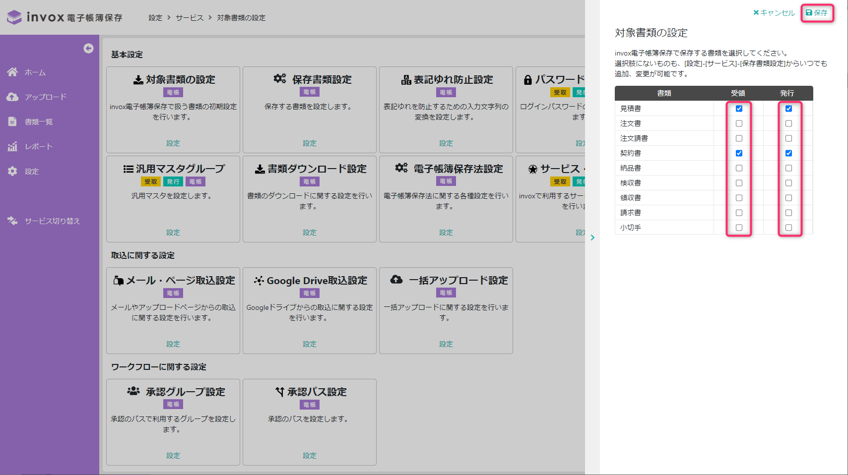 | 機能・仕様 | 電子取引情報の電子保存 / 紙書類のスキャナ保存 / 検索要件の項目をデータ化 / 訂正削除の履歴を記録 / 無期限に電子保管 / タイムスタンプを付与 |