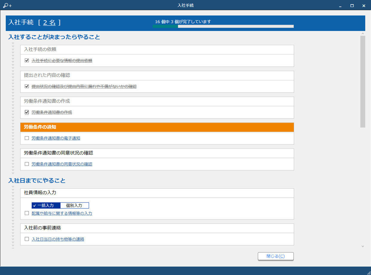社会保険手続き・労働契約、社員情報の更新を電子化することができます。