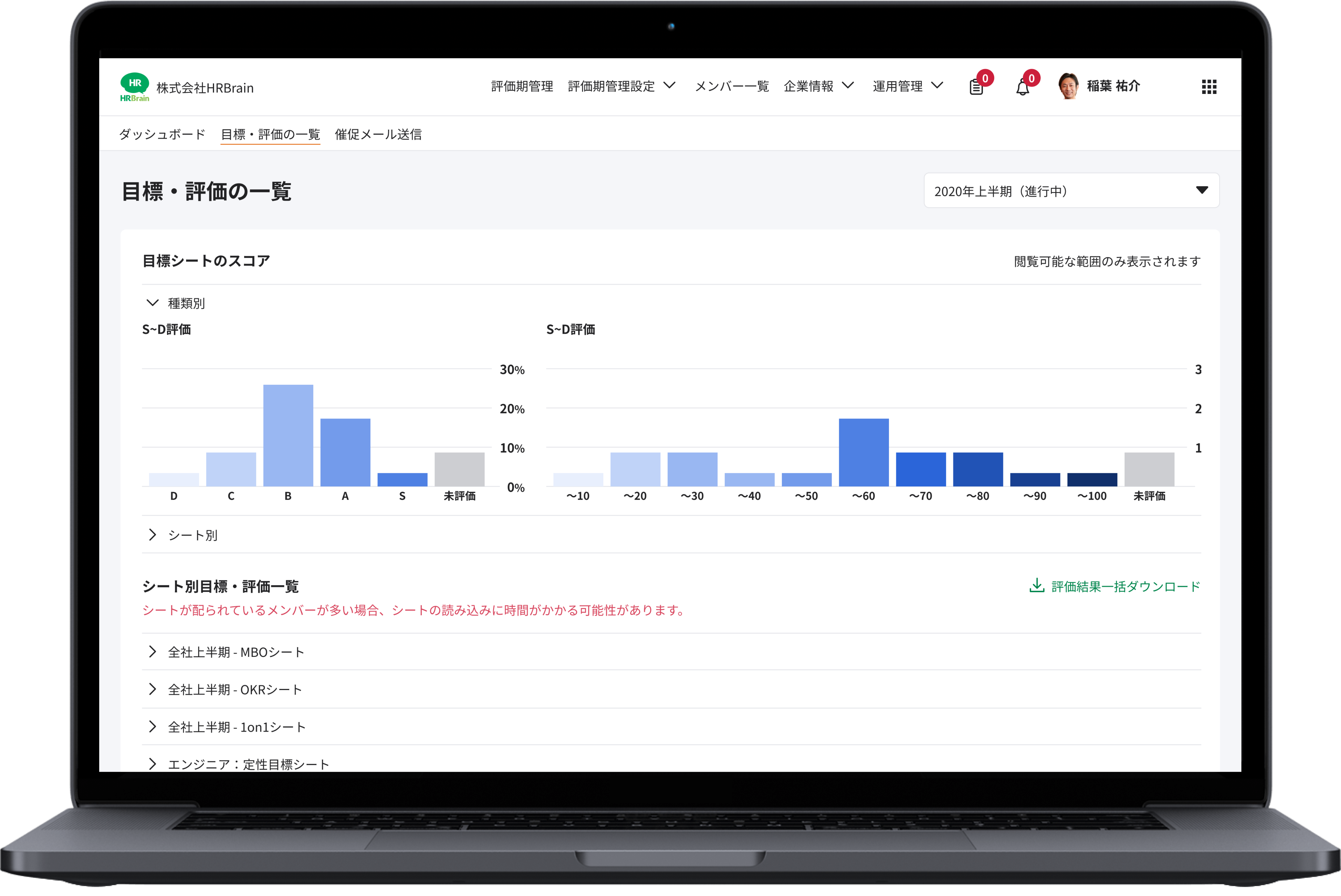 ・人事評価の集計も完全自動化。進捗管理や共有もワンクリックで可能