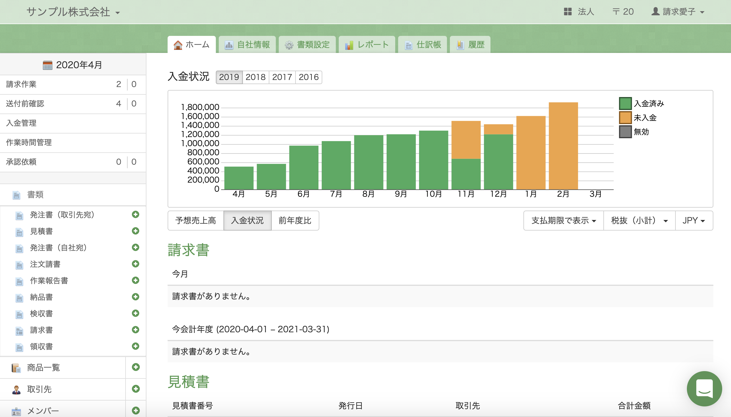 ◼︎ 見積・請求・納品書などの帳票の作成、管理