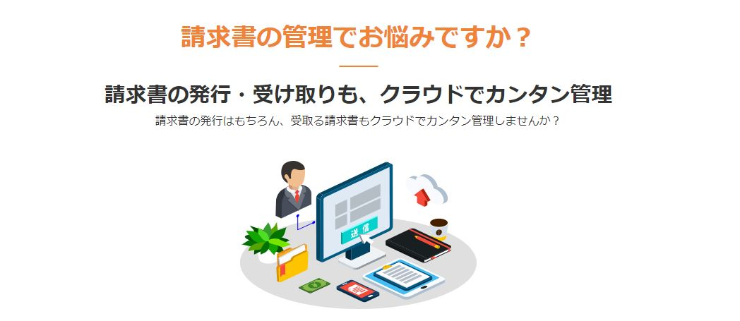 請求書の管理でお悩みですか? 請求書の発行・受け取りも、クラウドでカンタン管理 請求書の発行はもちろん、受取る請求書もクラウドでカンタン管理しませんか?