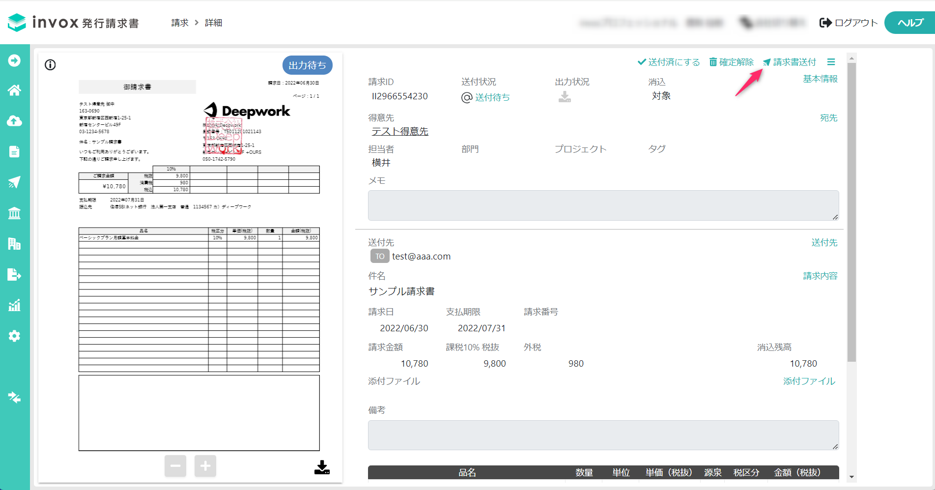 インボイス制度対応として、自社の登録番号を設定して、インボイス制度に対応した適格請求書を発行できます。