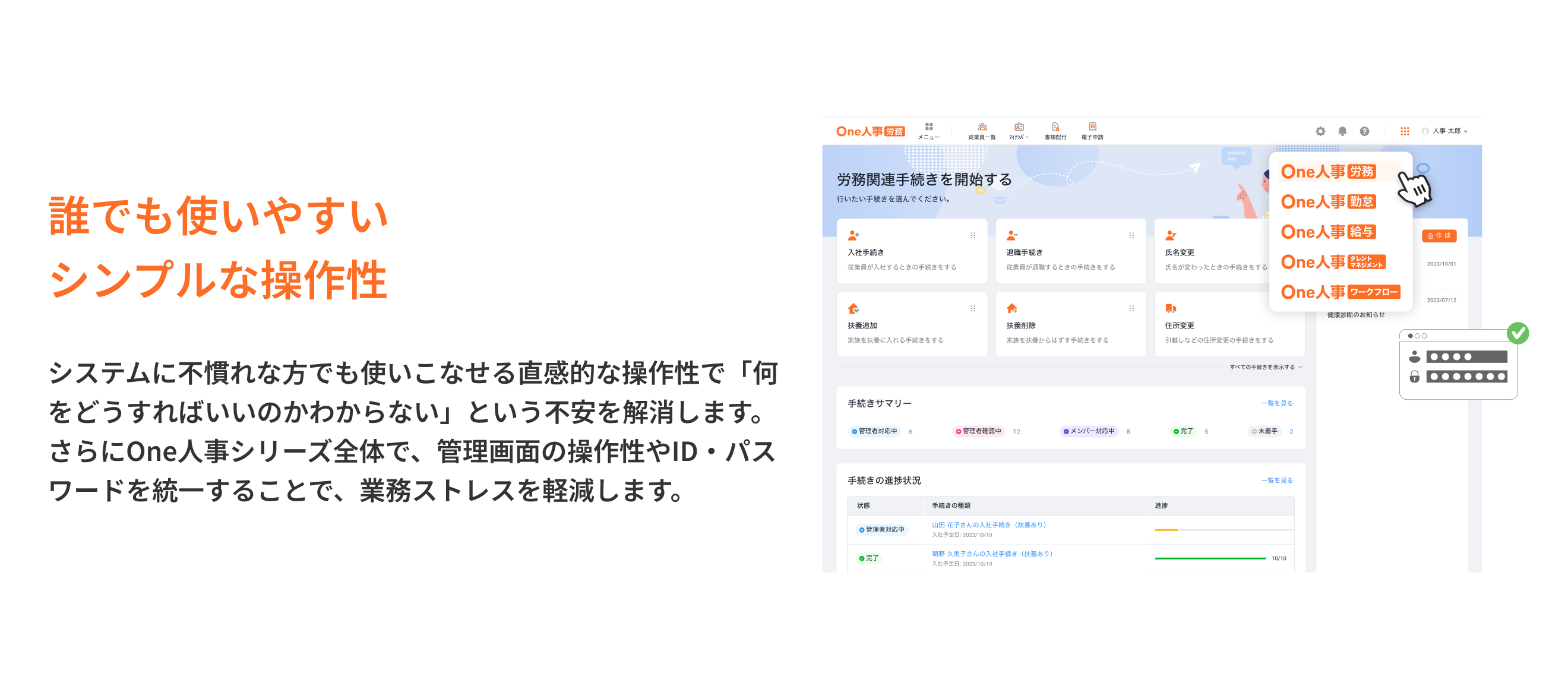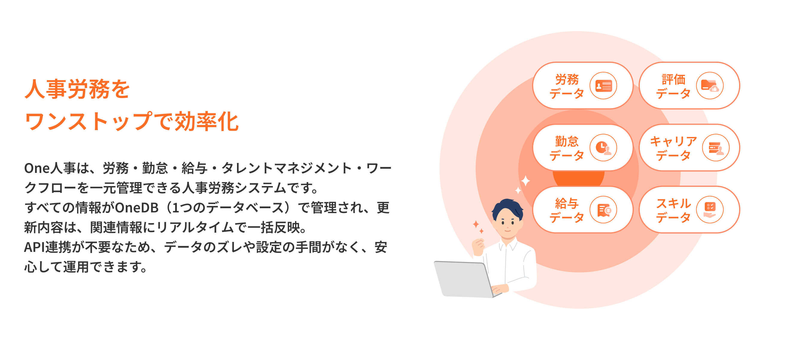 One人事シリーズなら、乱立する人事労務のクラウドシステムを手間なく統合し、