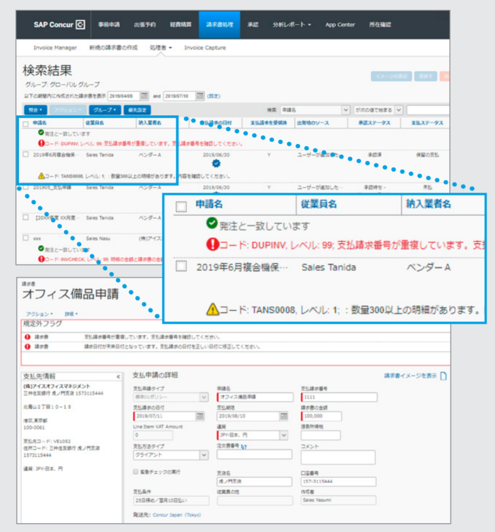 ・請求書とPOを瞬時に照合。間違いがあれば感知し、適切にアラート。