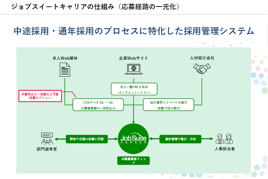 ジョブスイートキャリアは、中途採用管理に必要な機能を誰でも使いやすく、