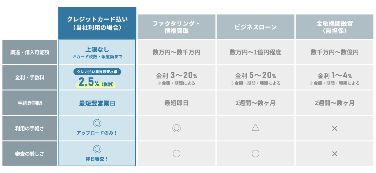 お手持ちの請求書をクレジットカードで後払い、業界最安値の手数料2.5%(税別)で最大60日繰り越せます!