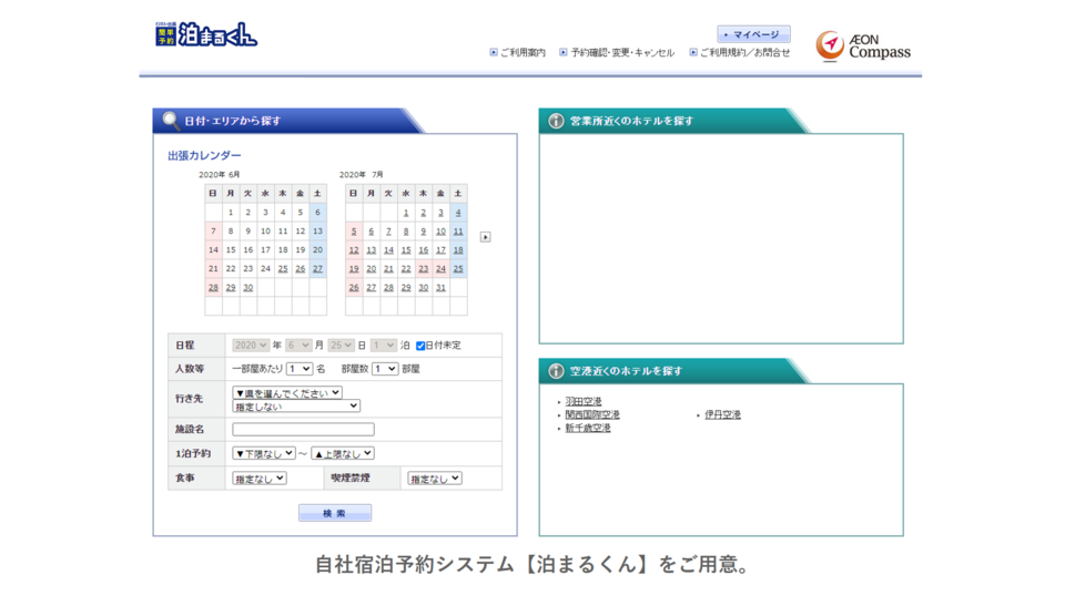 イオングループの旅行会社、イオンコンパス株式会社が提供する『BT-compass』は、国内の出張を一元化し管理できるクラウド型出張管理システムです。