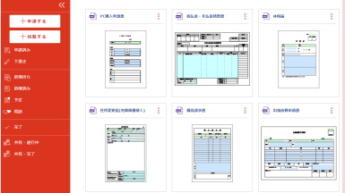 サムネイル/リストの表示切り替えで申請フォームの数や種類に適した選択画面にできることや、フォルダー分け、キーワード検索によって、目的の申請フォームにすばやくアクセスできます。