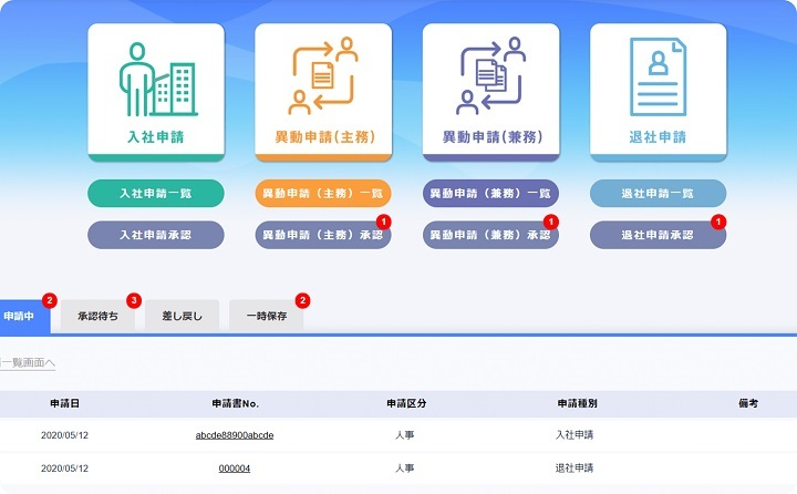 承認ルートは従業員情報の登録や更新が不要で、従業員情報データベースを変更することで、各システムの決裁権限や承認ルートを変更できます。